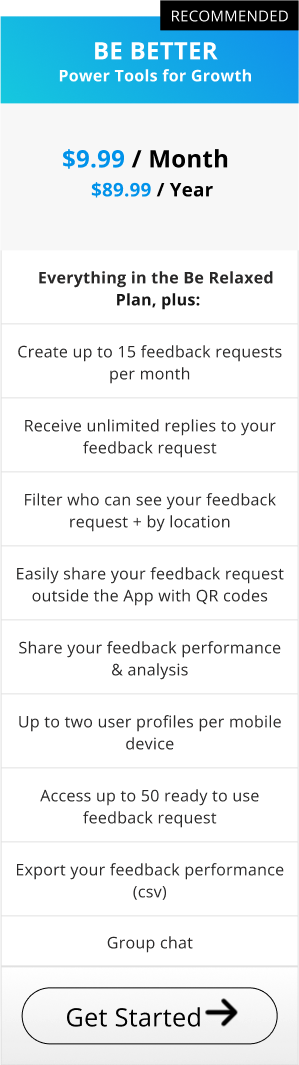 The Be Better app makes it easy to collect, view, and act on feedback — wherever you are